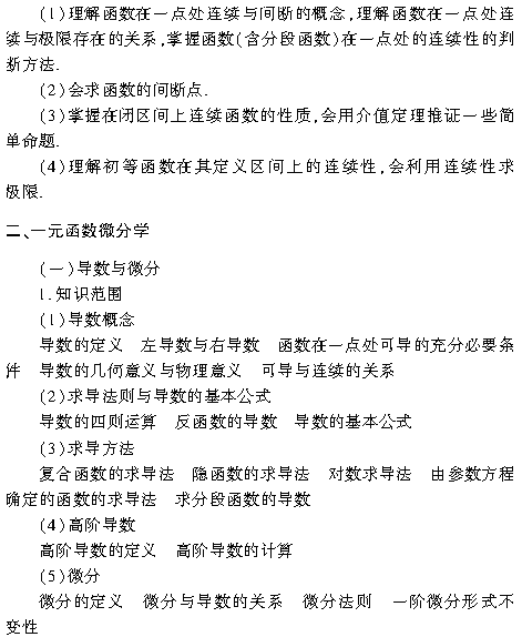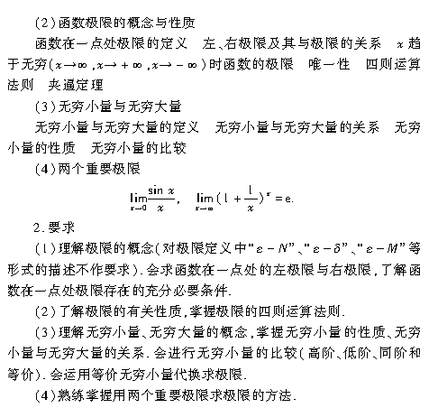 2019版成人高考专升本高数(一)复习考试大纲